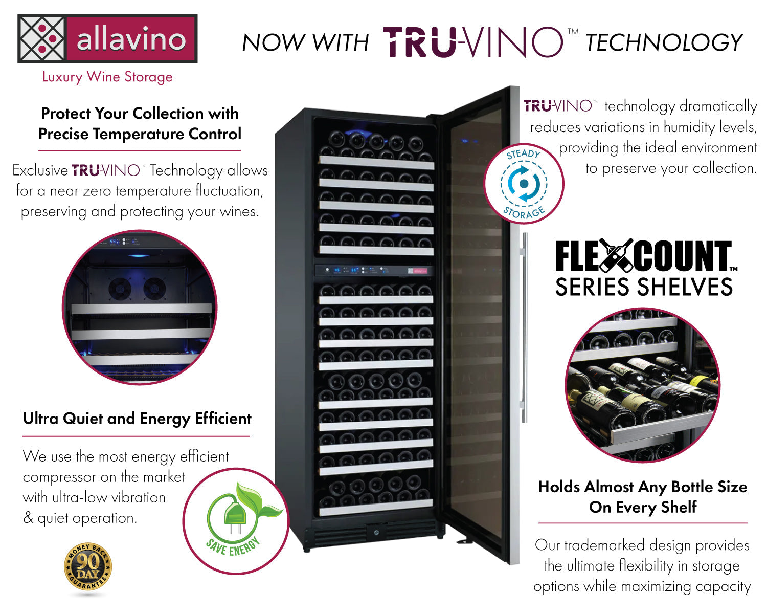 Allavino24" Wide FlexCount II Tru-Vino 172 Bottle Dual Zone Black Left Hinge Wine Refrigerator