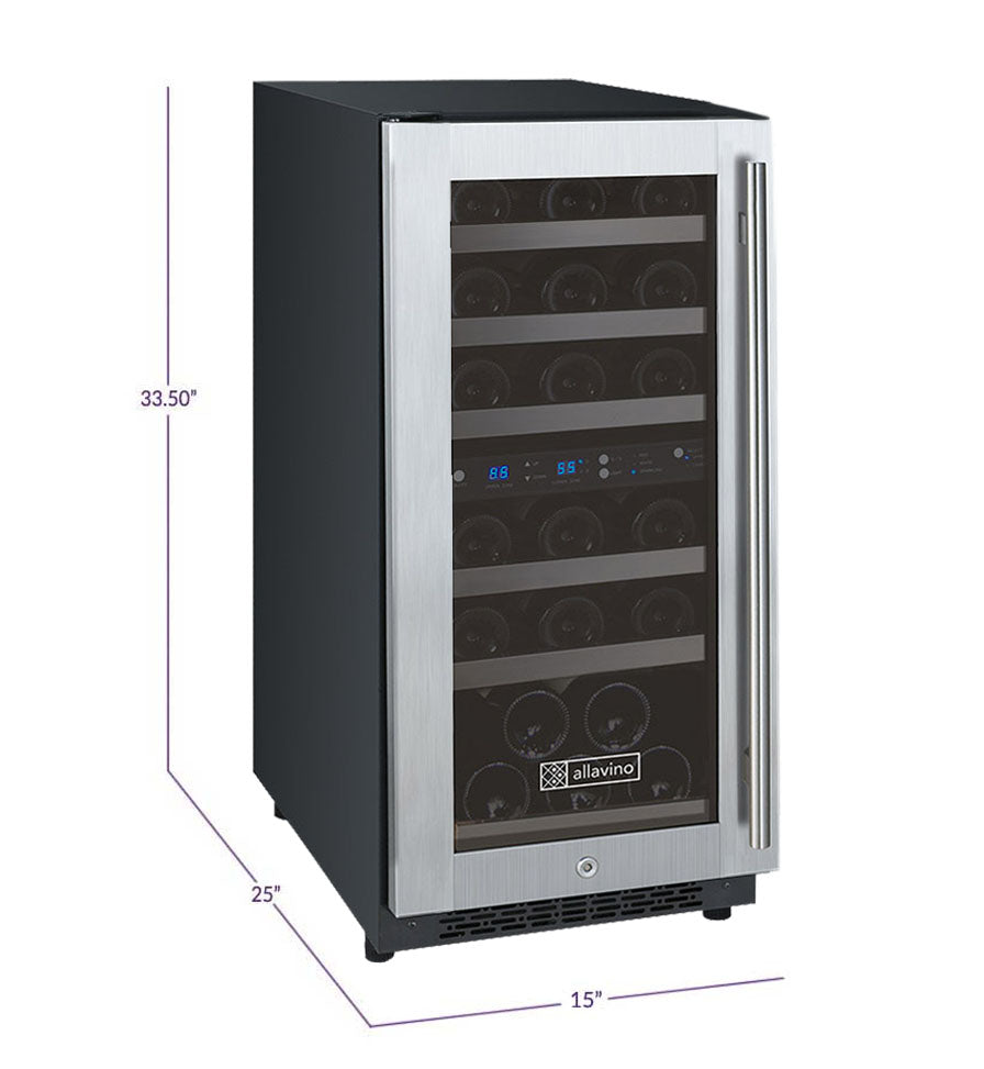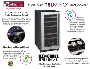 The Allavino FlexCount II Series VSWR30-2SL20 Dual Zone Wine Refrigerator with Tru-Vino Temperature Control Technology can store up to 30 of your favorite wine bottles in a 15" wide cabinet that can be used as a stylish freestanding unit or built into your cabinetry for seamless wine storage.
