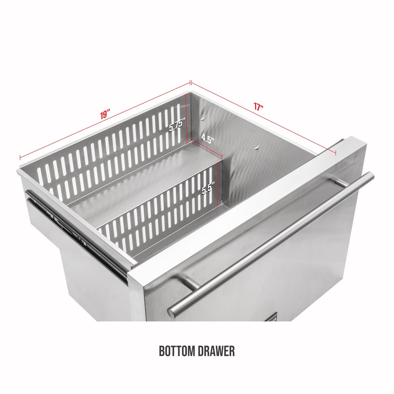 Removable drawers on ball-bearing slides for thorough deep cleaning