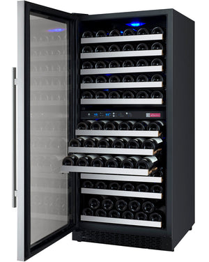 24" Wide FlexCount II Tru-Vino 121 Bottle Dual Zone Stainless Steel Left Hinge Wine Refrigerator