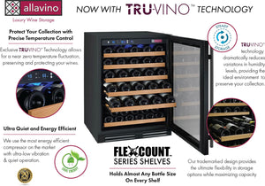 The Allavino FlexCount II Series VSWR56-1BR20 Single Zone Wine Refrigerator with Tru-Vino Temperature Control Technology makes it easy to store up to 56 wine bottles of various sizes. and can be used as a stylish freestanding unit or built into your cabinetry for seamless wine storage.