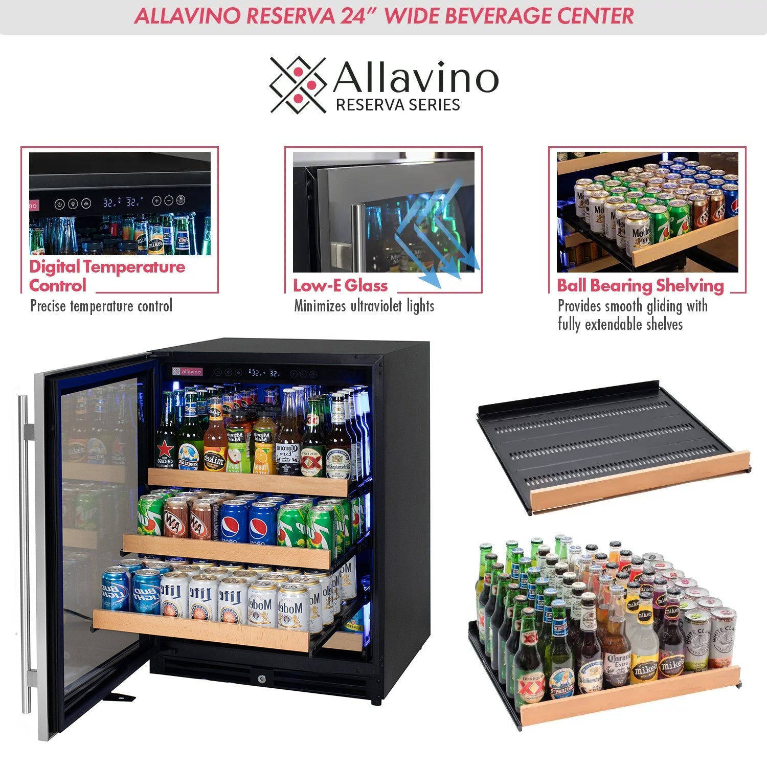 The beverage center has 4 shelves with a total storage capacity of 154 12oz cans, or 112 cans and 42 bottles. Spacing between each shelf gives you enough clearance to store any 12oz. can while maximizing storage capacity.