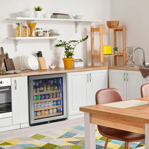 This beverage center's front-venting design and fully finished cabinet allows it to be built into your cabinetry or used as a freestanding unit.