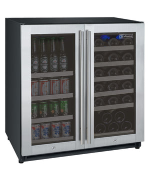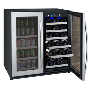 30" Wide FlexCount II Tru-Vino 30 Bottle/88 Can Dual Zone Stainless Steel Built-In Wine Refrigerator/Beverage Center