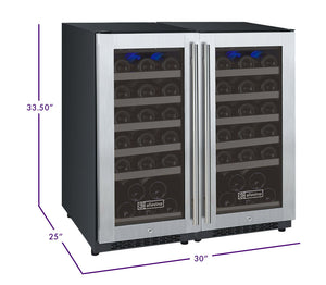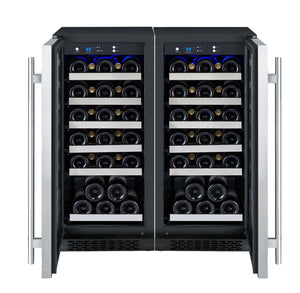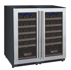 The Allavino FlexCount II 2X-VSWR30-1S20 Dual Zone Wine Refrigerator with Tru-Vino Temperature Control Technology makes it easy to store up to 60 wine bottles of various sizes, and can be used as a stylish freestanding unit or built into your cabinetry for seamless wine storage. This unit is made up of two single zone wine refrigerators with opposite hinges placed side by side.