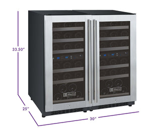 30" Wide FlexCount II Tru-Vino 60 Bottle Four Zone Stainless Steel Side-by-Side Wine Refrigerator