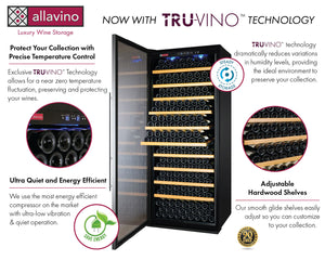 The Allavino Vite II YHWR305-1SL20 Wine Refrigerator with Tru-Vino Temperature Control Technology is a stylish freestanding unit that can hold up to 277 bottles. Protect and preserve your wine collection with the latest innovation in wine storage technology by Allavino. Easily set your desired temperature with the easy-to-use digital control panel and trust in Tru-Vino Temperature Control Technology to protect your collection through consistent temperature maintenance. This wine refrigerator features sturdy hardwood shelves that can be easily adjusted to fit the needs of your collection. The smooth gliding shelves allow for convenient access to every bottle without disrupting the delicate wine maturation process.