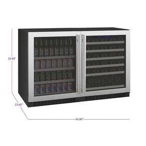 47" Wide FlexCount II Series 56 Bottle/154 Can Dual Zone Stainless Steel Side-by-Side Wine Refrigerator/Beverage Center