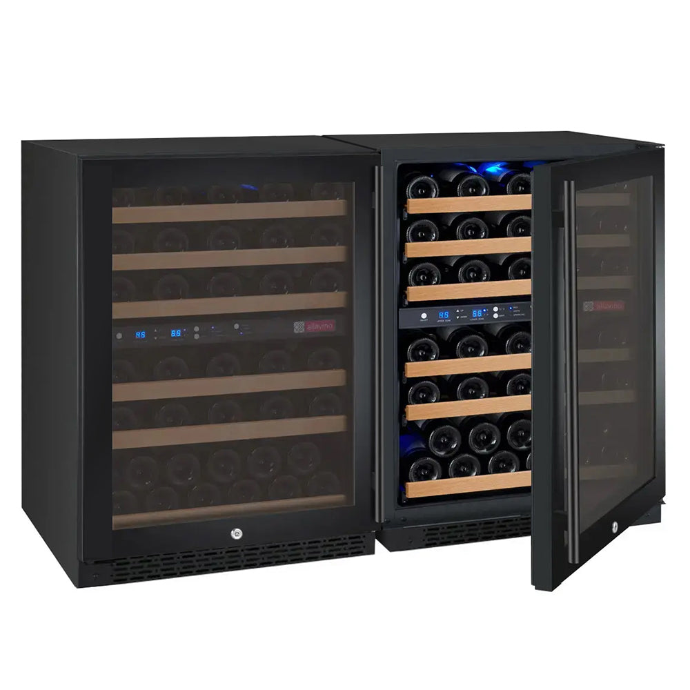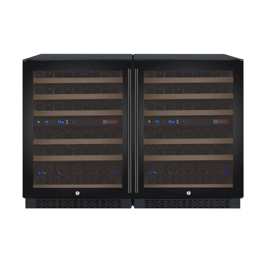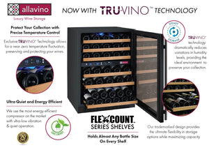 47" Wide FlexCount II Tru-Vino 112 Bottle Four Zone Black Side-by-Side Wine Refrigerator
