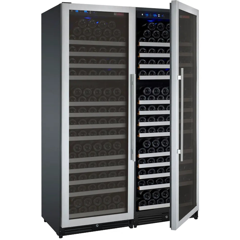 Made up of two single zone 177 bottle units with opposite hinged doors, Allavino's all-new FlexCount II 2X-VSWR177-1S20 Dual Zone Wine Refrigerator with Tru-Vino Technology can be used as a stylish freestanding unit or built into your cabinetry for seamless wine storage.