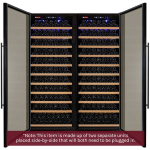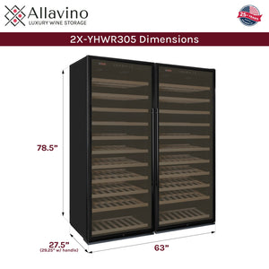 Made up of two single zone wine refrigerators with opposite hinged doors, the Allavino Vite II 2X-YHWR305-1B20 Wine Refrigerator is a stylish freestanding unit that can hold up to 554 bottles. Protect and preserve your wine collection with the latest innovation in wine storage technology by Allavino. Easily set your desired temperature with the easy-to-use digital control panels and trust in Tru-Vino Temperature Control Technology to protect your collection through consistent temperature maintenance. This wine refrigerator features sturdy hardwood shelves that can be easily adjusted to fit the needs of your collection. The smooth gliding shelves allow for convenient access to every bottle without disrupting the delicate wine maturation process.