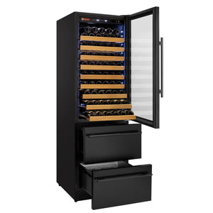 76.5" Tall Black Wine Refrigerator with Two Refrigerated Drawers