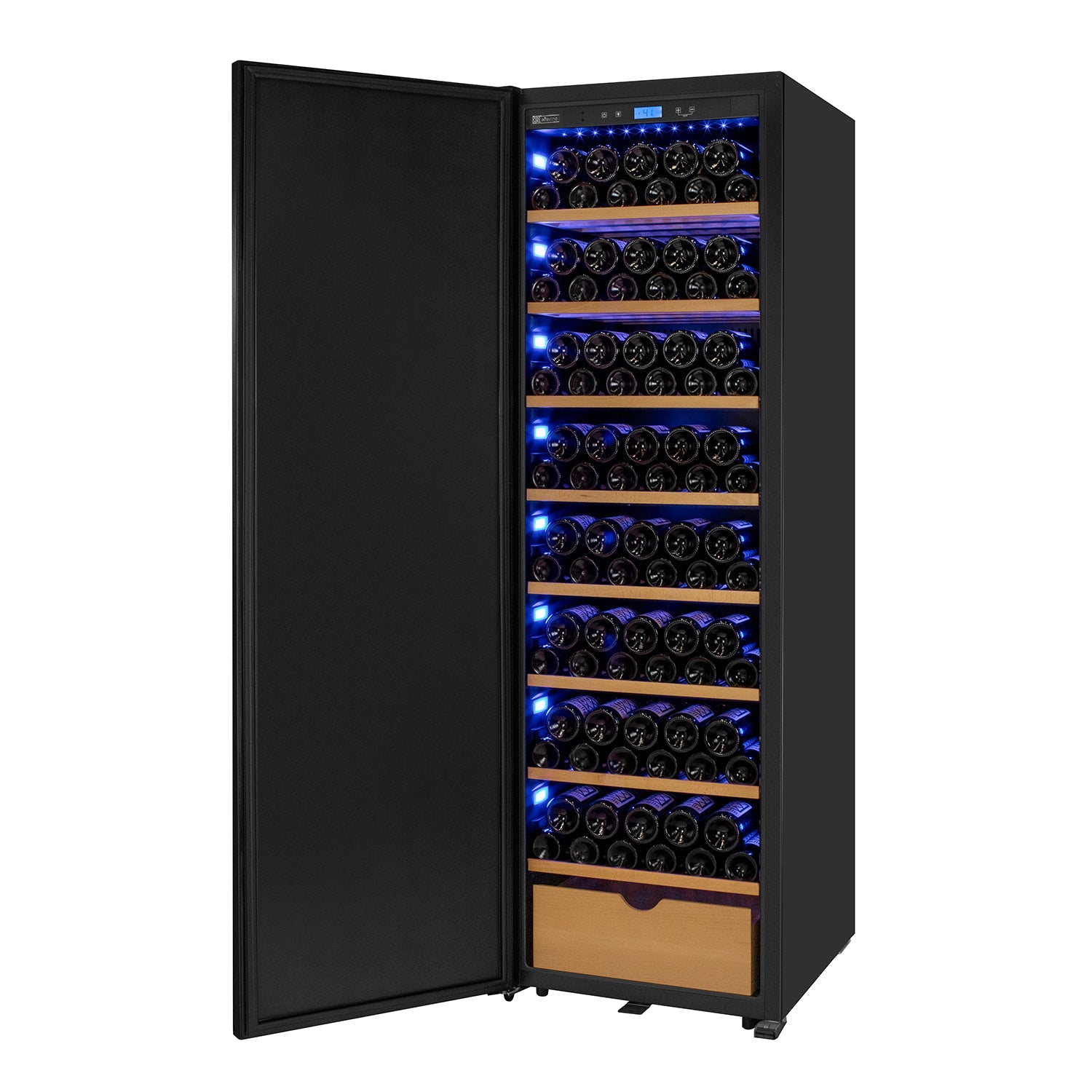 Cool blue light beautifully illuminates the interior, making finding the perfect bottle fast and easy. The lights emit much less heat than an incandescent bulb which means they can be left on to store your collection without creating a harmful hot spot that could affect your wine bottles.