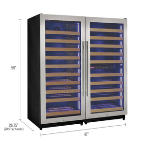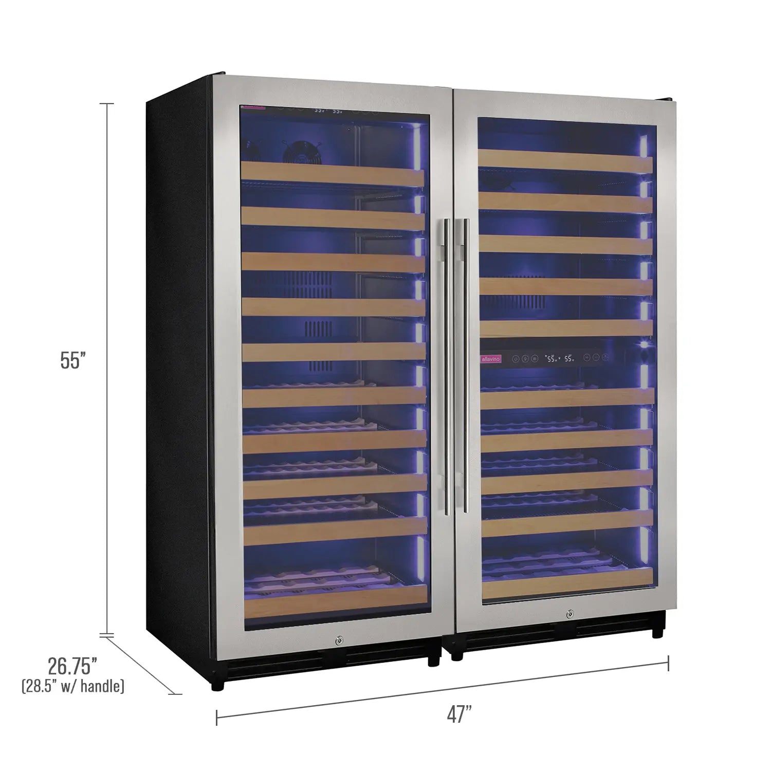 Allavino 238 Bottle 55" Tall Three Zone Side-by-Side Stainless Steel Wine Refrigerator
