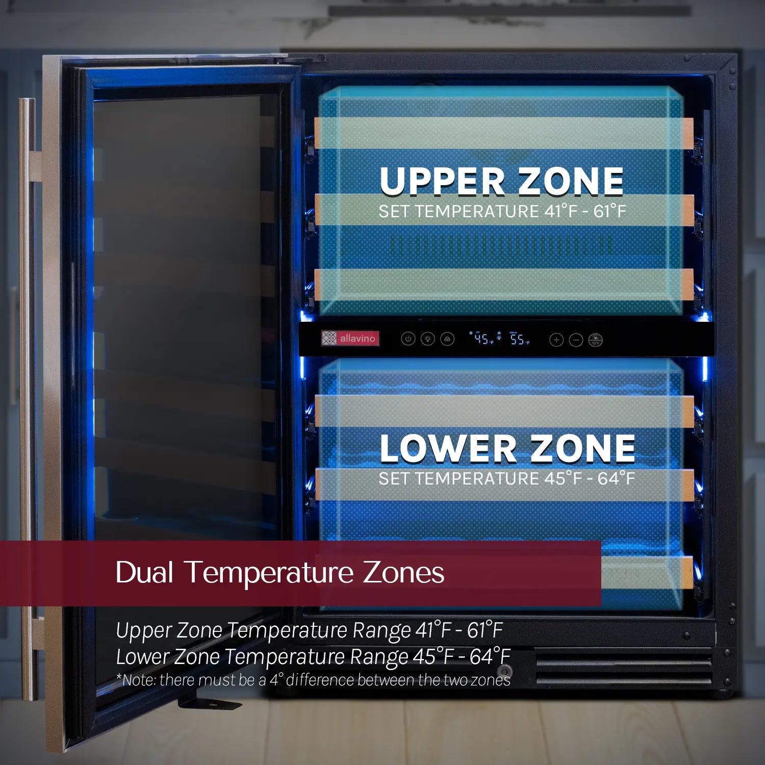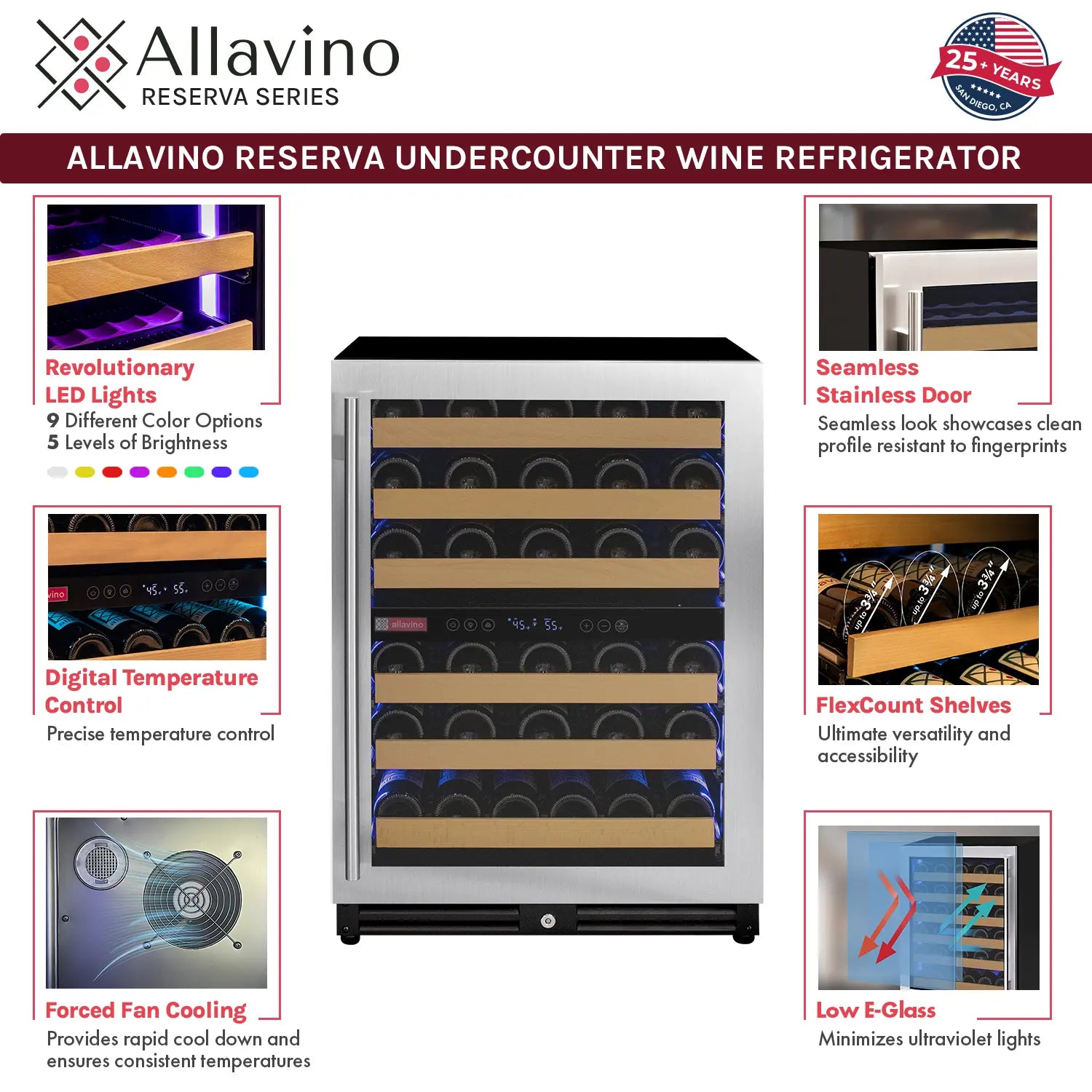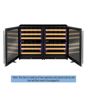 Allavino Reserva Series 112 Bottle Four Zone Undercounter Wine Refrigerator Cooler with Stainless Steel Doors - Side-by-Side