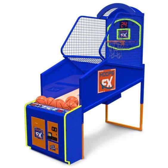It's Game Time! Hoops FX-The New Standard Mid-sized basketball game that replaces the every durable street game Hoop Fever. Locally Redesigned. Redesigned by ICE right in Buffalo, New York. New Game Play. Incorporates new game play, LED lighting, moving hoop, and great sound effects. Deluxe Marquee option available.