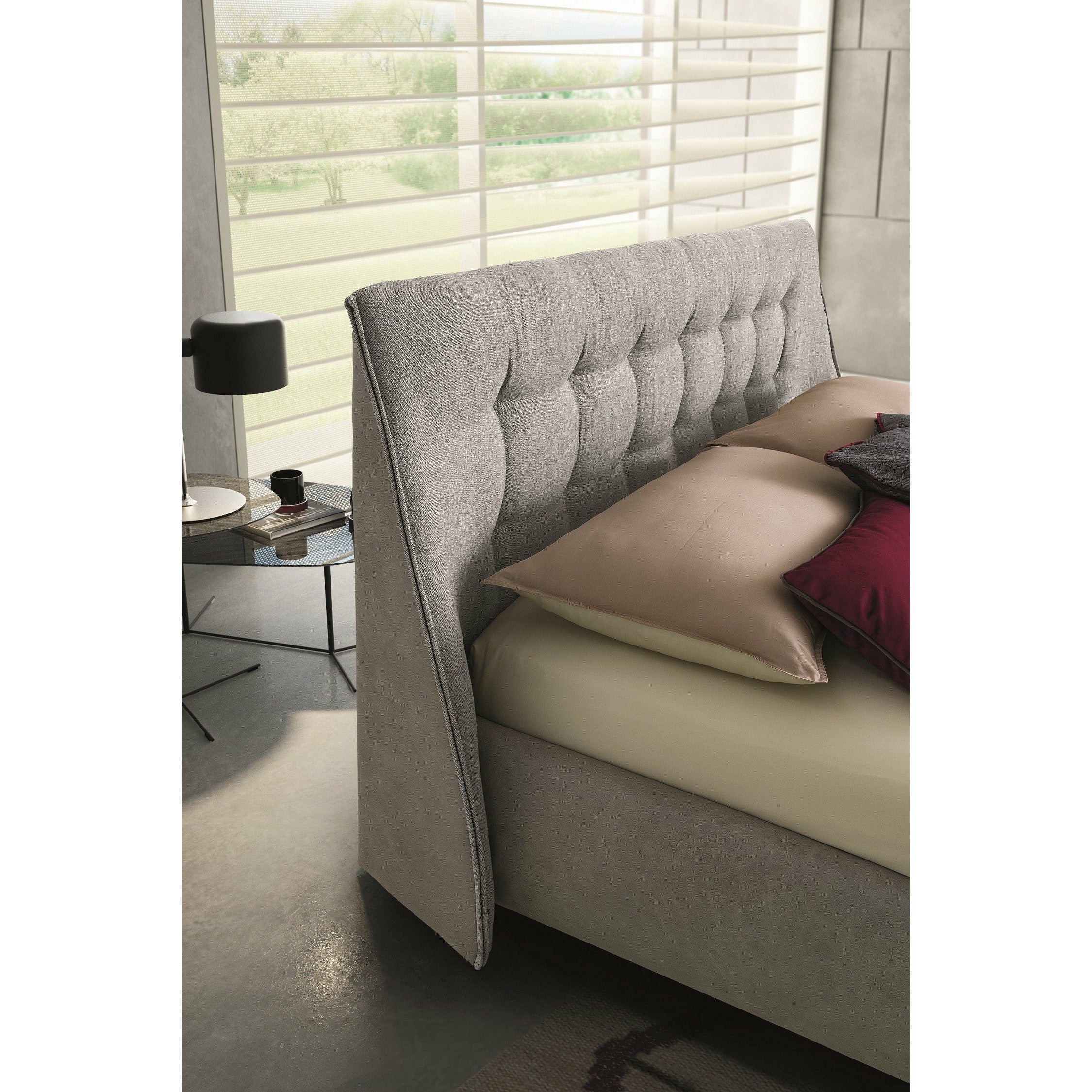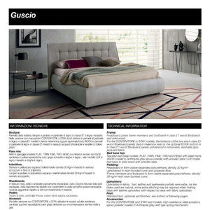 Simple, sweeping lines come together to transform your bedroom into a relaxing refuge. The Guscio bedroom is made of high-quality beige Italian fabric and has a simple design headboard that says a lot. The Guscio combines exceptional craftsmanship and meticulous attention to detail with the best raw materials available.