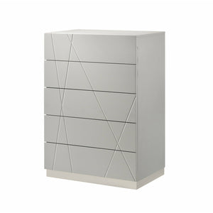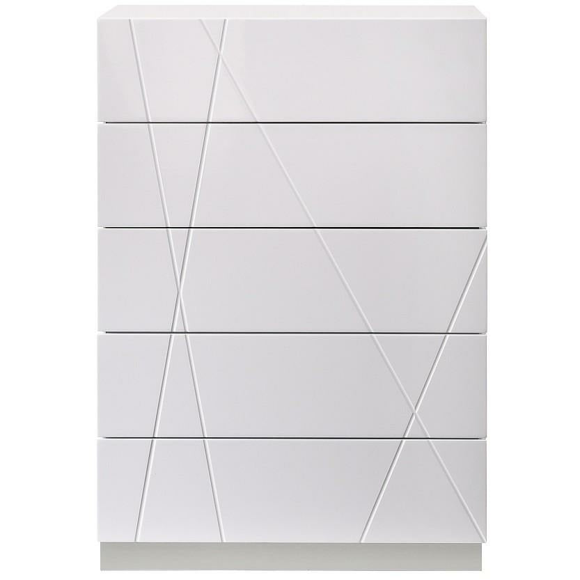 J&M Furniture's Naples Bedroom has a unique design and outlook for a modern bedroom. This white lacquered finish set will enhance the look of bedrooms of all sizes and hues, aiming for a mild yet sophisticated effect.