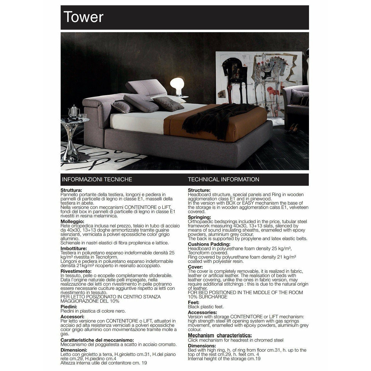 With comfort in mind, the Tower platform bed was created. Two ratchet headrests are included in this bed for added comfort. This bed is made of water-resistant taupe fabric and features plastic feet to protect hardwood floors from damage. White and grey eco-leather options are also available. Both Queen and King sizes are available.