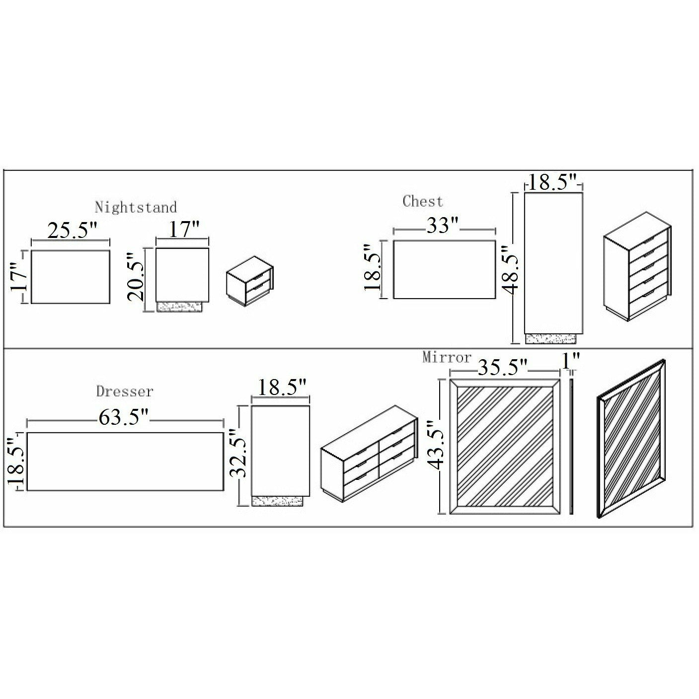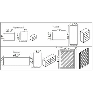 Nightstand: 25.5"W x 17"D x 20.5"H