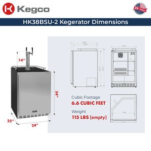 Kegco 24" Wide Dual Tap Stainless Steel Built-In Right Hinge Kegerator with Kit