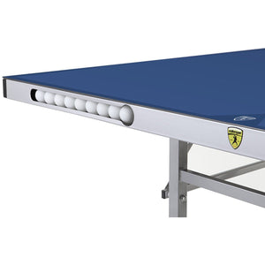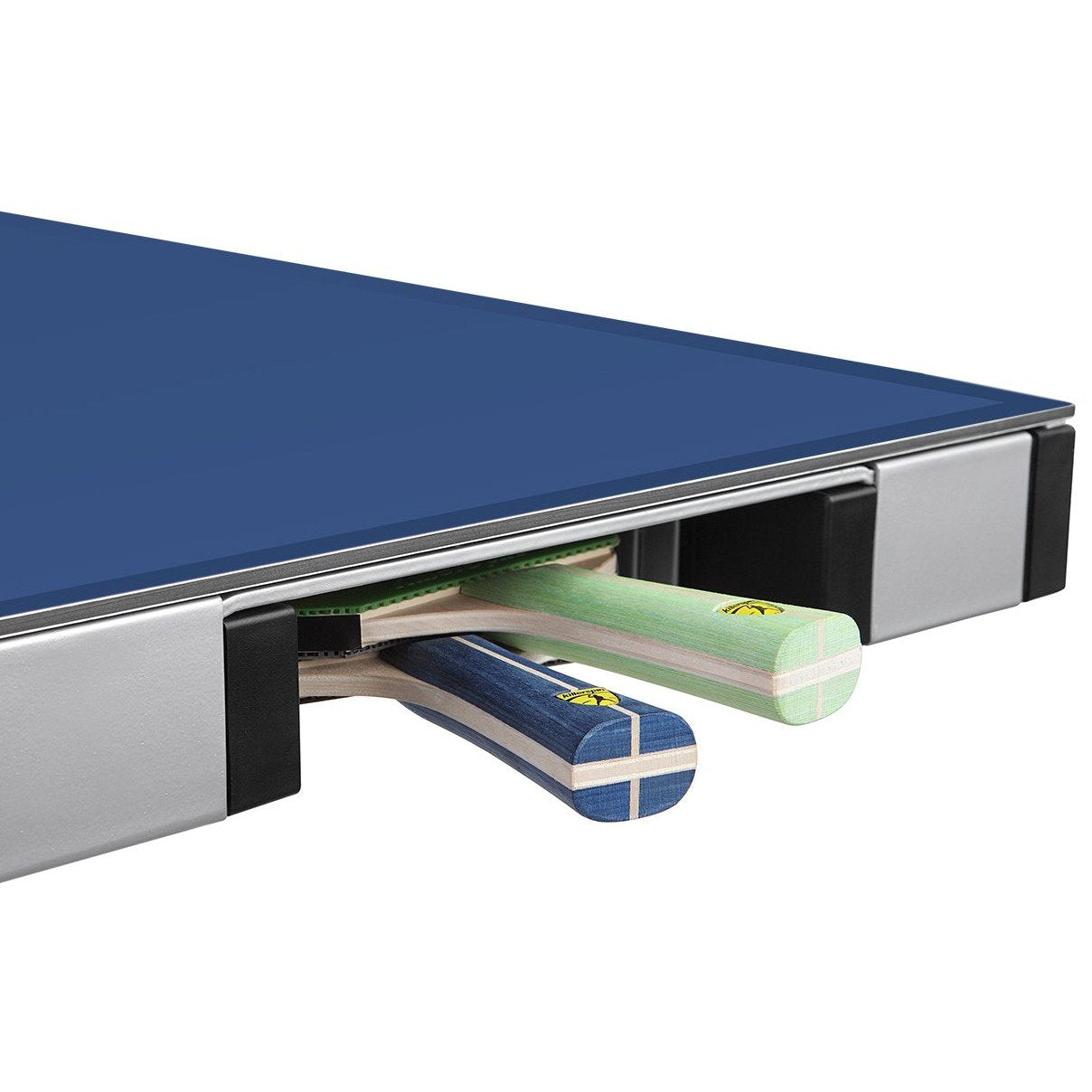 This revolutionary table is designed to look great and perform even better. Setup and storage is easy, and innovative storage pockets at each end allow for easy access to balls and paddles.