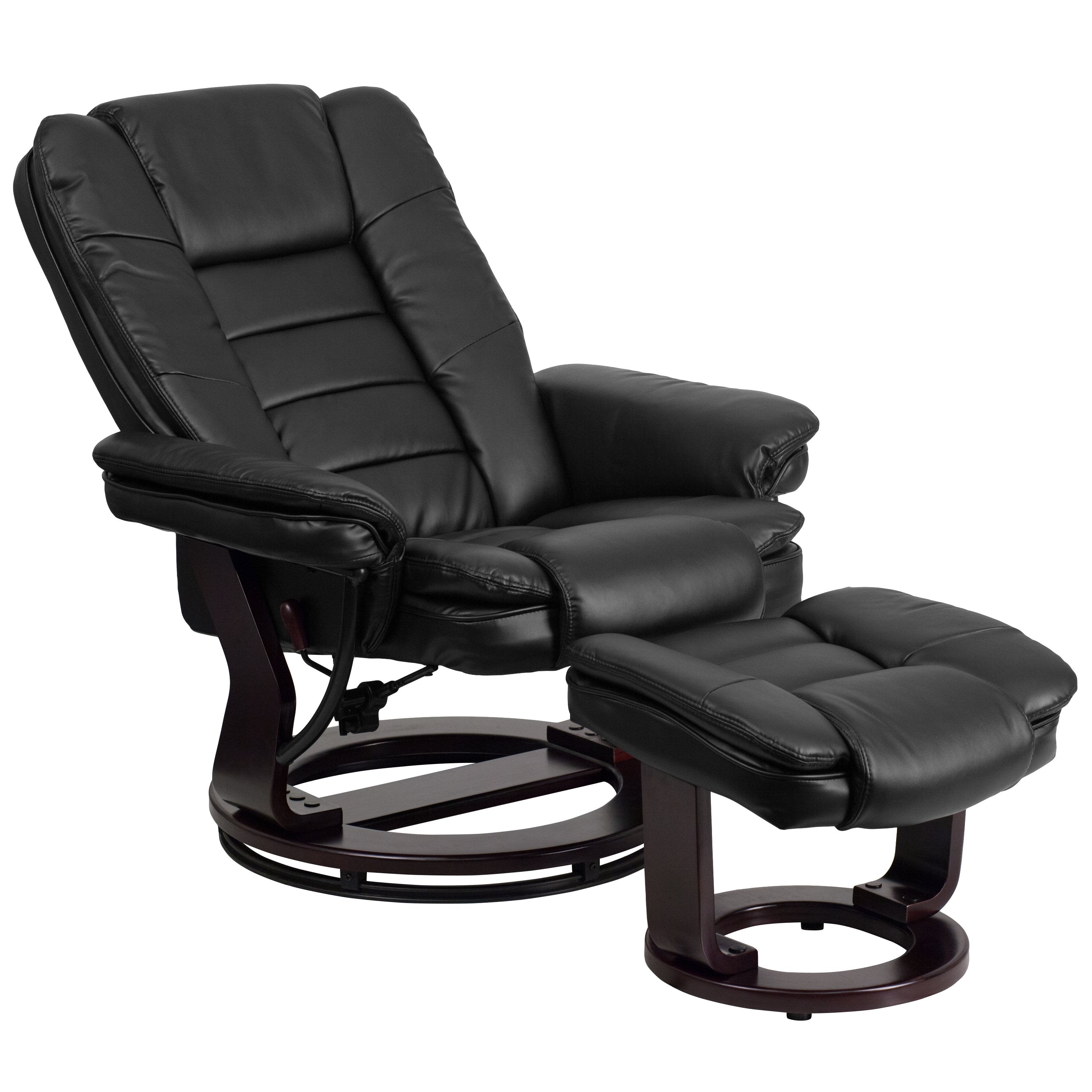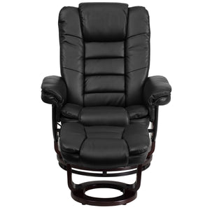 LeatherSoft Contemporary Multi-Position Recliner with Horizontal Stitching and Ottoman with Swivel Mahogany Wood Base in Black (BT-7818-BK-GG)