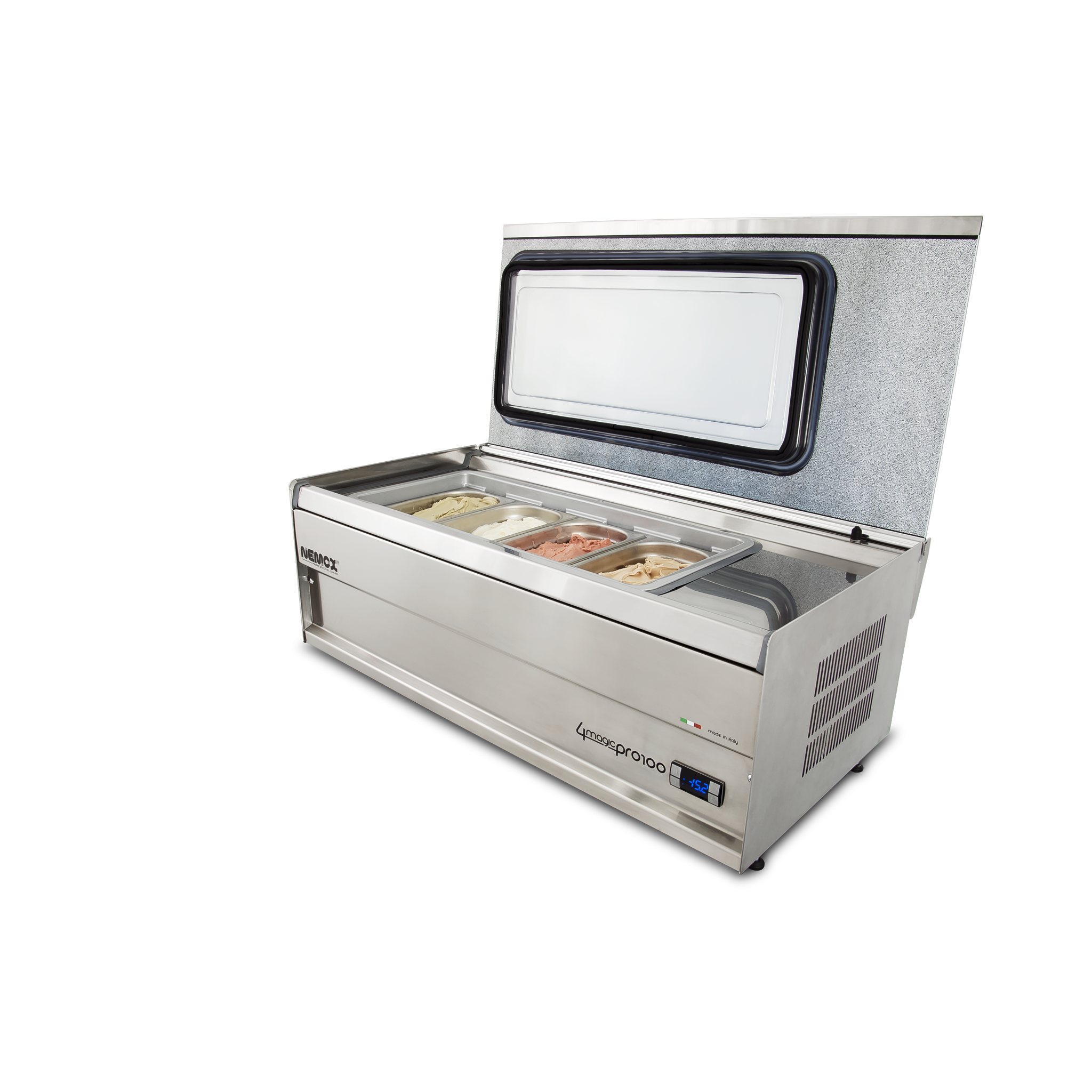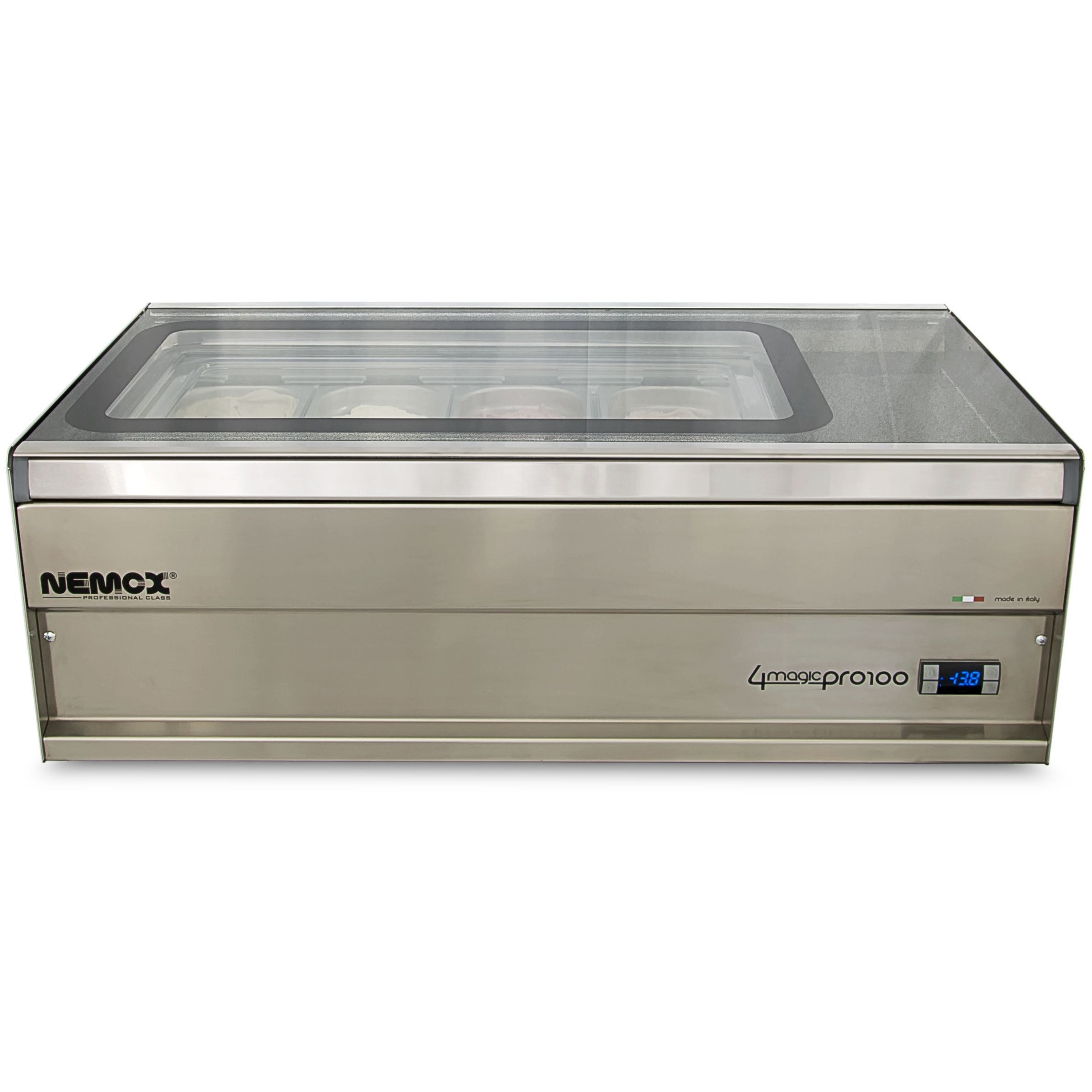 Introducing the ultimate gelato-ice cream storage display! 4 Magic PRO 100 is the perfect addition to our range of gelato-ice cream makers. You can store and serve your finish product in our attractive see-through display case. Multiple temperature settings guarantee that the products are perfectly preserved for serving at any time. The NEMOX Magic PRO 100 is the only countertop ventilated gelato-ice cream storage & display case specifically designed for restaurants, caterers, coffee shops and gourmet shops. Your customers will recognize the freshness and appreciate the effort a true gourmet presentation!