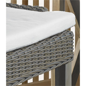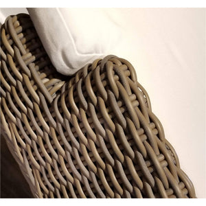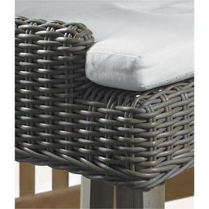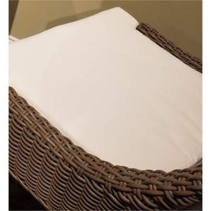 Our most popular eating chair has now been made available in an outdoor version! The weather-resistant PE wicker and aluminum construction can withstand the elements and is easy to clean and dry. Both outdoor and indoor use is possible. The comfy cushion is supplied, with replaceable outdoor white fabric coverings for easy washing and recovery. *White (WHT), Dark Grey (DGY), Stone (STO), Navy (NAV), Chocolate Brown (CHO), and Tangerine (TAN) replacement slipcovers are available (TNG).