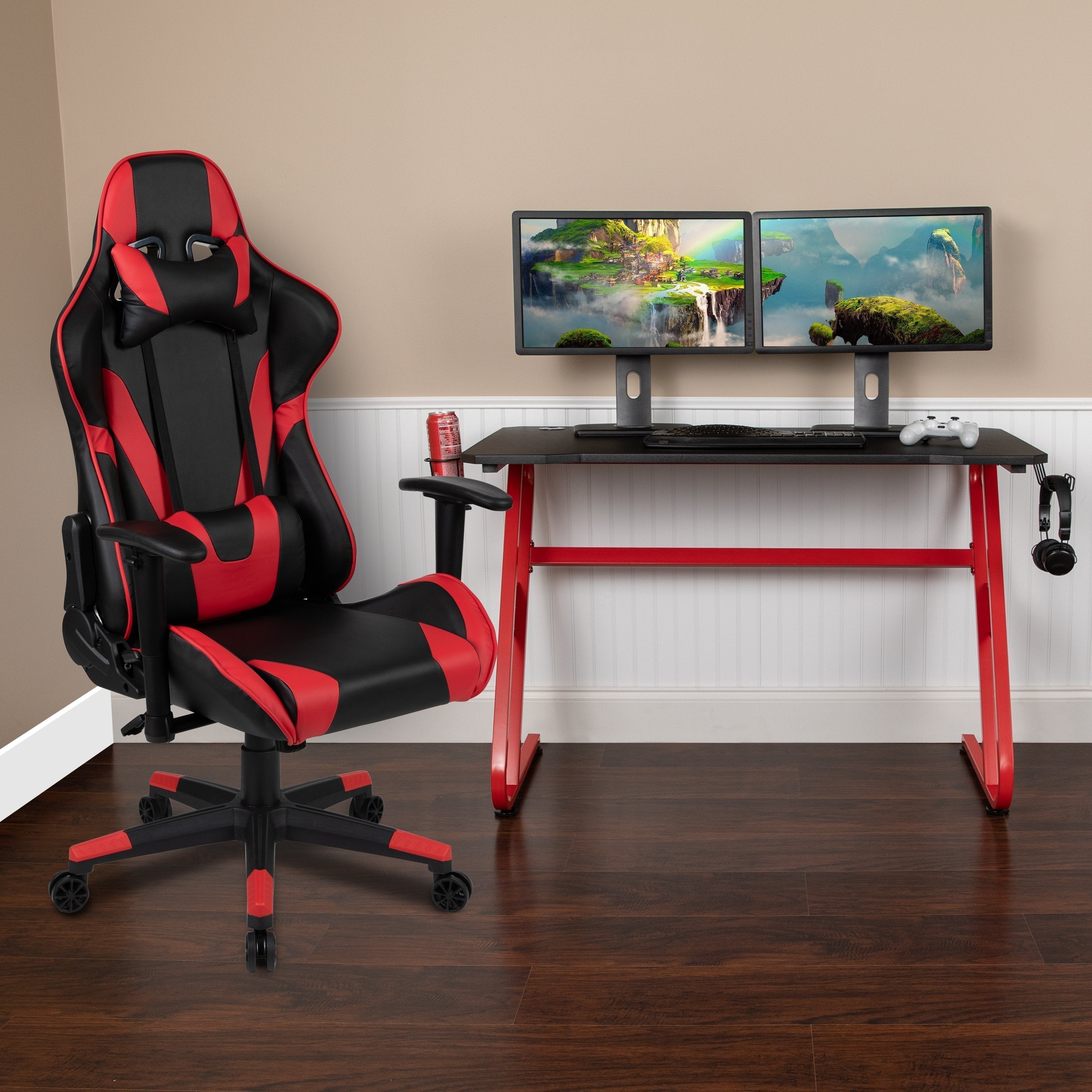 Red Gaming Desk and Red/Black Reclining Gaming Chair Set with Cup Holder and Headphone Hook (BLN-X20RSG1030-RD-GG)