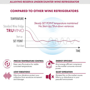 The Allavino Reserva 2X-BDW5034S-1BS Dual Zone Side-by-Side Wine Refrigerator Cooler with Tru-Vino® temperature control technology makes it easy to store up to 100 wine bottles of various sizes, and can be built into your cabinetry for seamless wine storage.