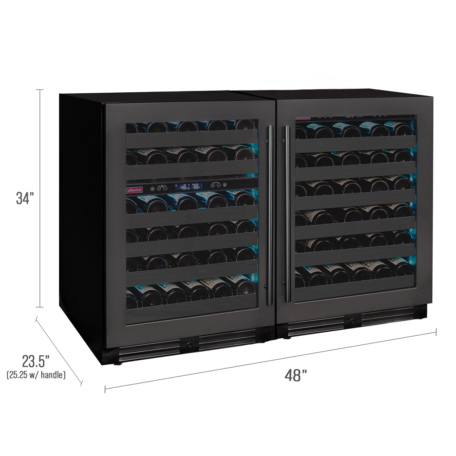 The Allavino Reserva 3Z-BDW5034-BS Three Zone Side-by-Side Wine Refrigerator Cooler with Tru-Vino® temperature control technology makes it easy to store up to 100 wine bottles of various sizes, and can be built into your cabinetry for seamless wine storage.