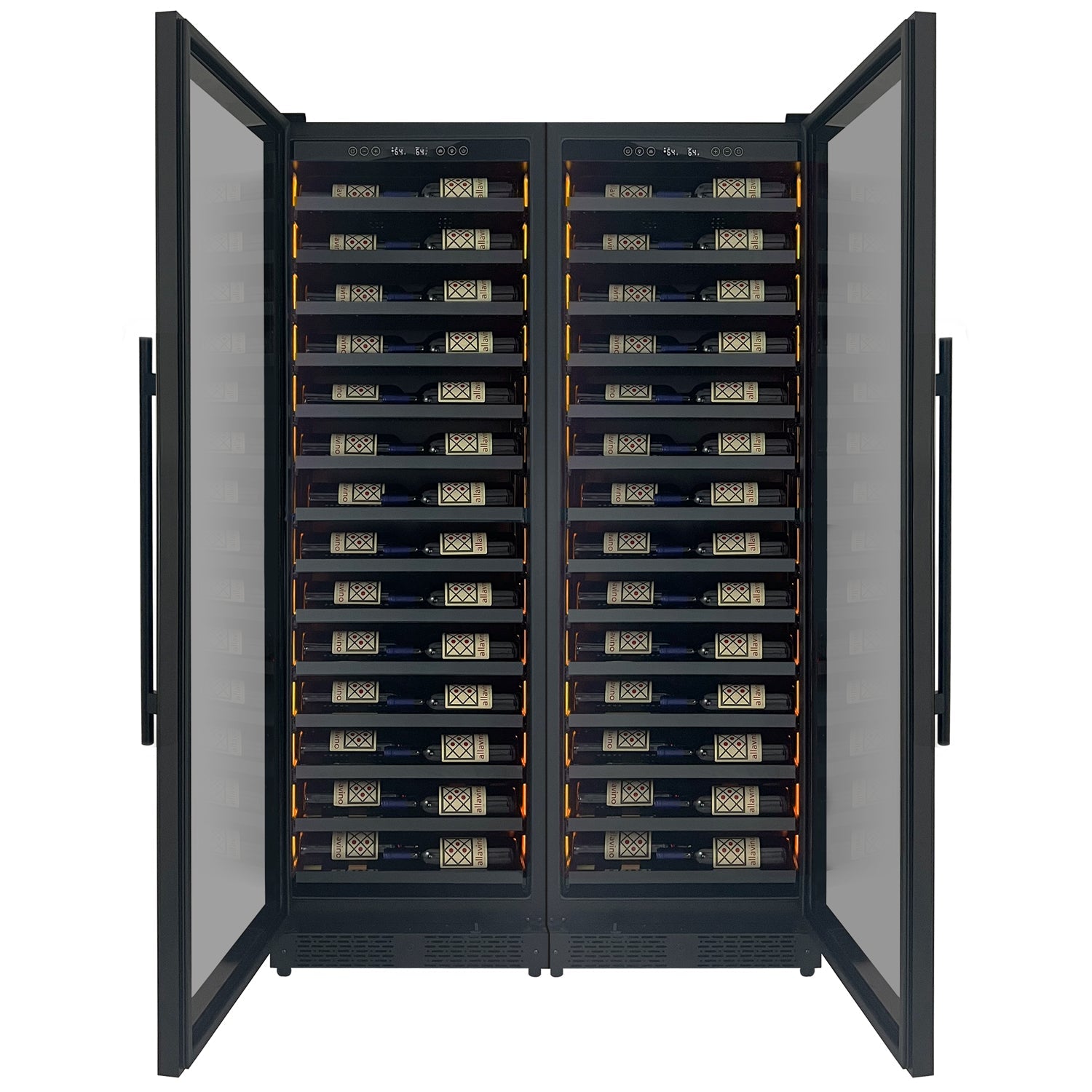 Reserva Series 134 Bottle 71" Tall Dual Zone Black Side-by-Side Shallow Wine Refrigerator Console