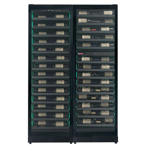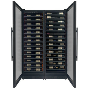 Reserva Series 134 Bottle 71" Tall Three Zone Black Side-by-Side Shallow Wine Refrigerator Console