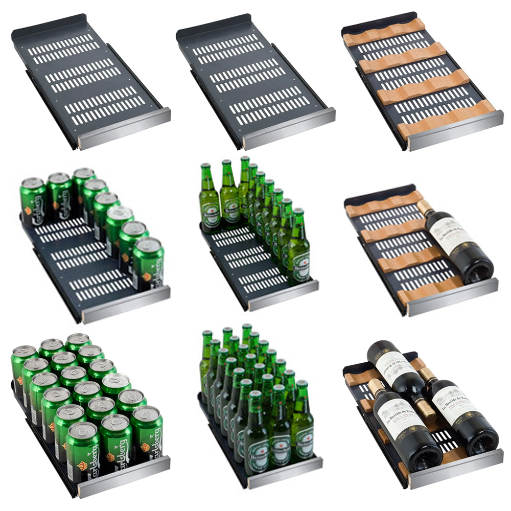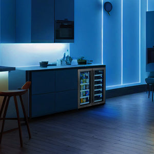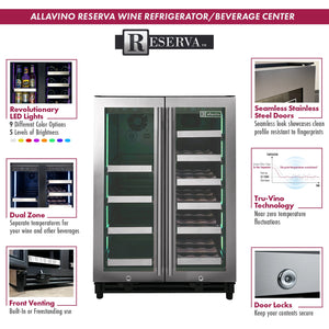 Allavino's Reserva Series 24" Wide VSBCW34FD-2S Wine Refrigerator/Beverage Center with Tru-Vino Temperature Control Technology features two separate, independently controlled storage zones that allow you to store your wine and other beverages at different temperatures. It gives you flexible storage options for up to 18 wine bottles, and up to 66 cans or 48 cans and 21 bottles.
