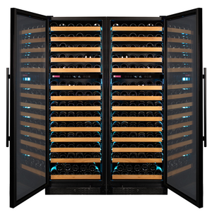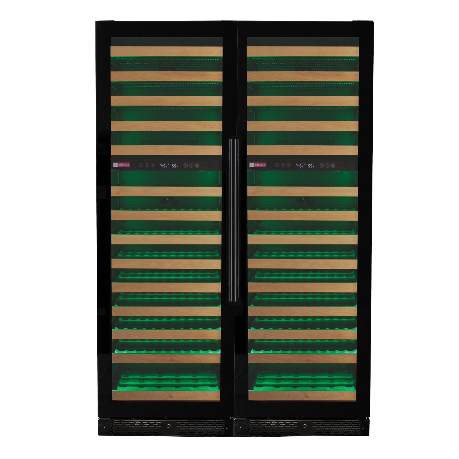 Reserva Series 308 Bottle 71" Tall Four Zone Black Glass Side-by-Side Wine Refrigerator