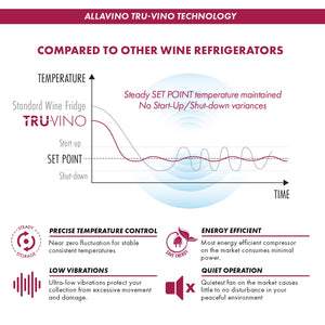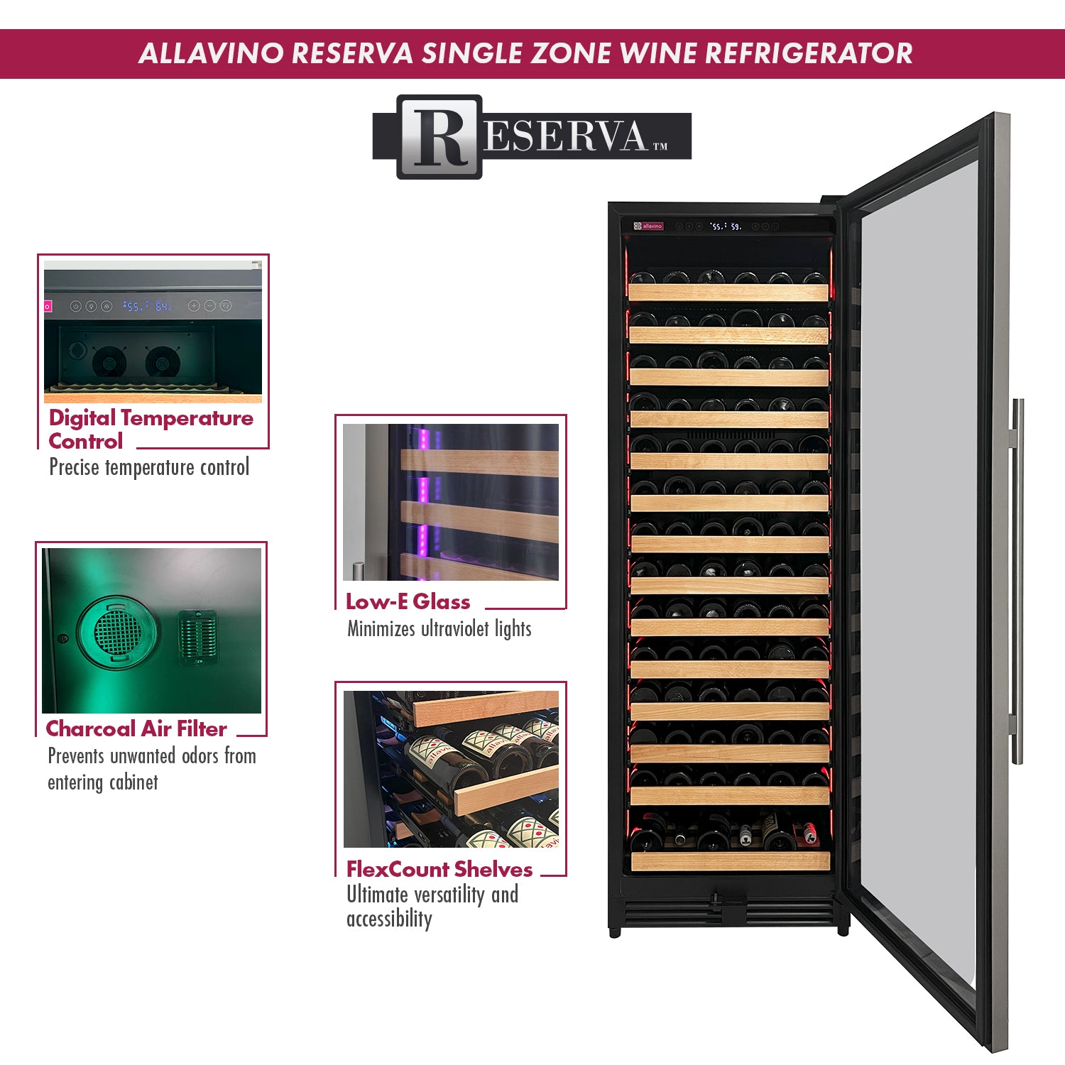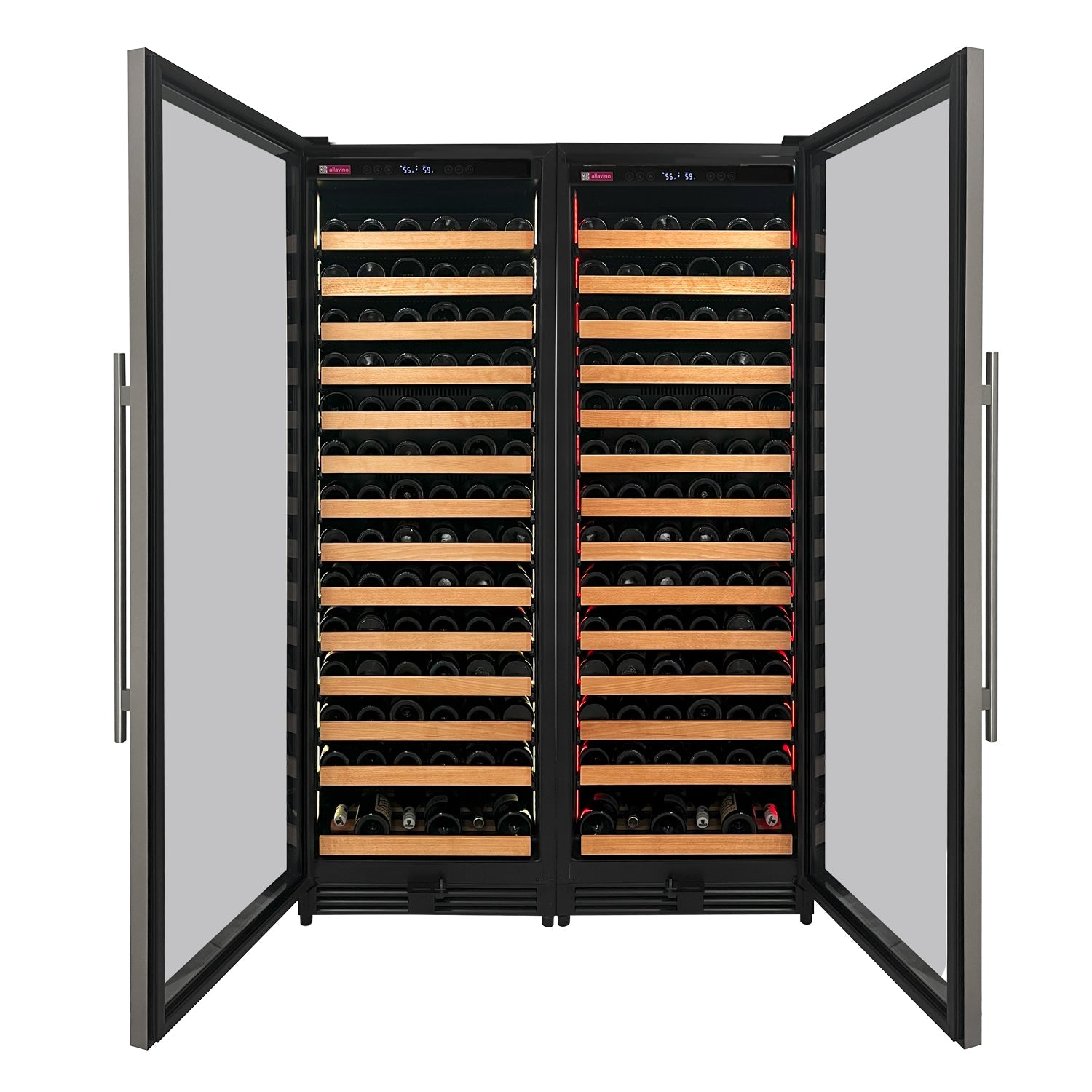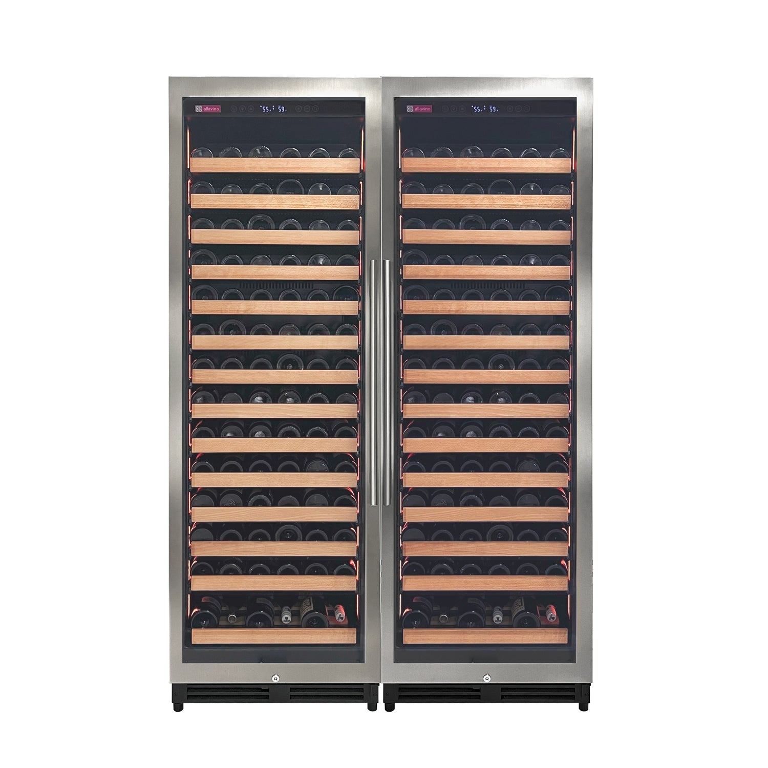 Allavino's 2X-VSW16371S-1S Reserva Series 326 Bottle 71" Tall Dual Zone Stainless Steel Side-by-Side Wine Refrigerator with Tru-Vino Temperature Control Technology is made up of two separate single zone wine refrigerators placed side by side. It gives you flexible storage options for up to 326 wine bottles.