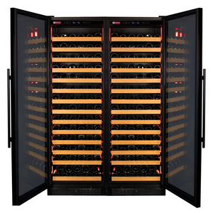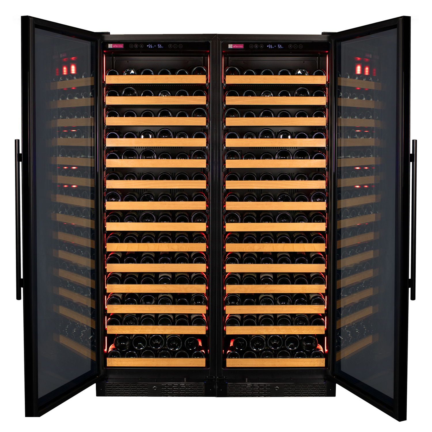 Reserva Series 326 Bottle Tall Dual Zone Tall Side-by-Side Wine Refrigerators with Black Glass Doors