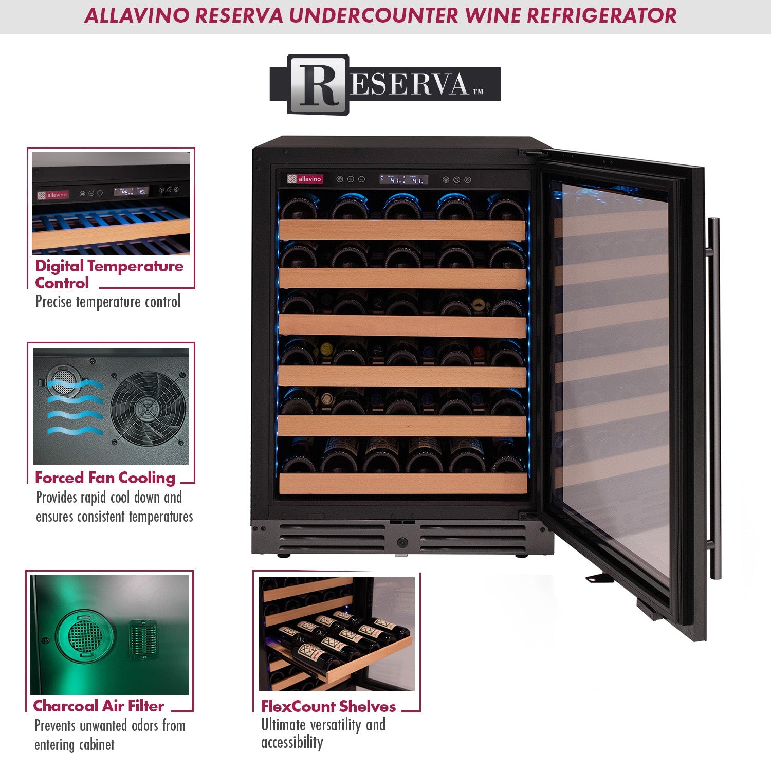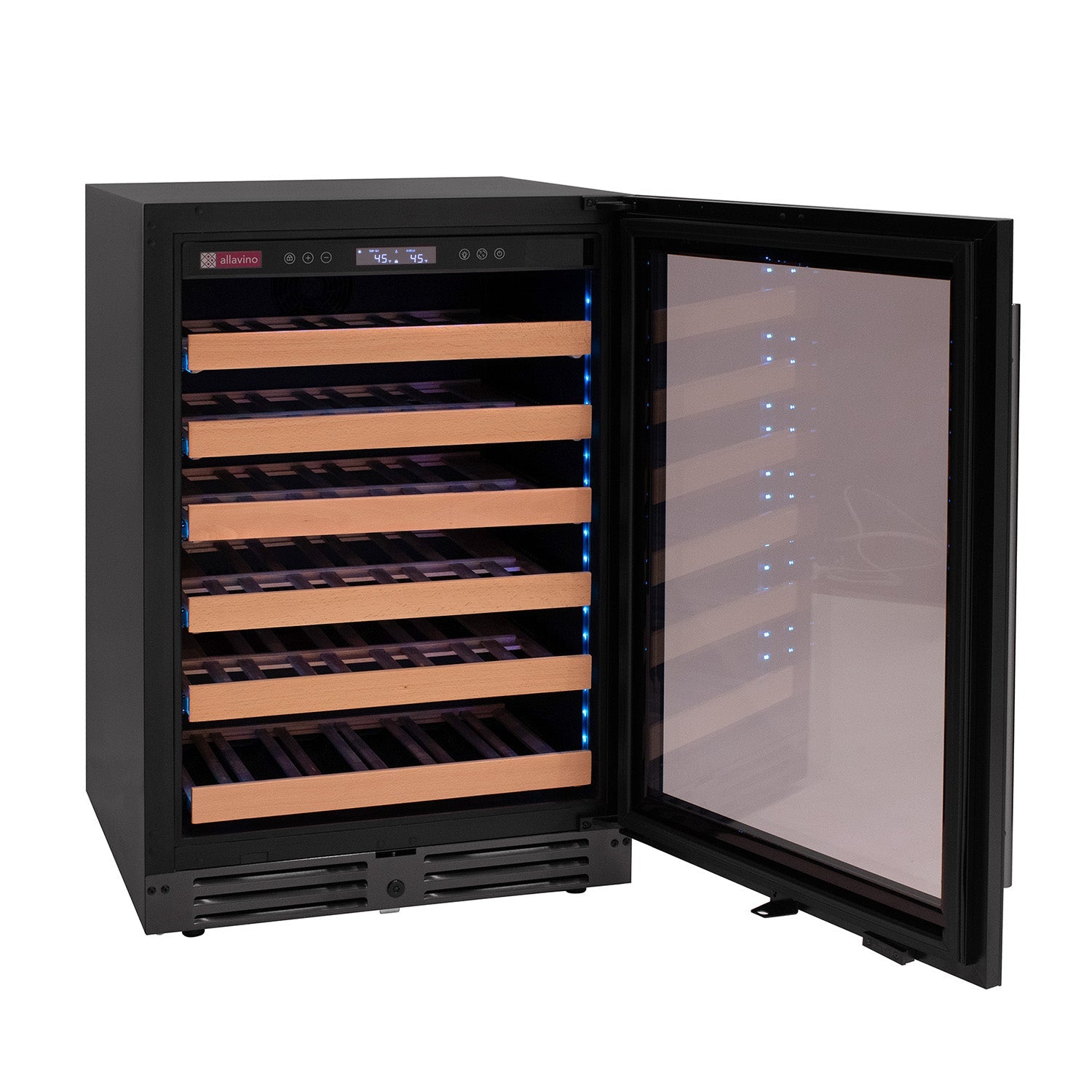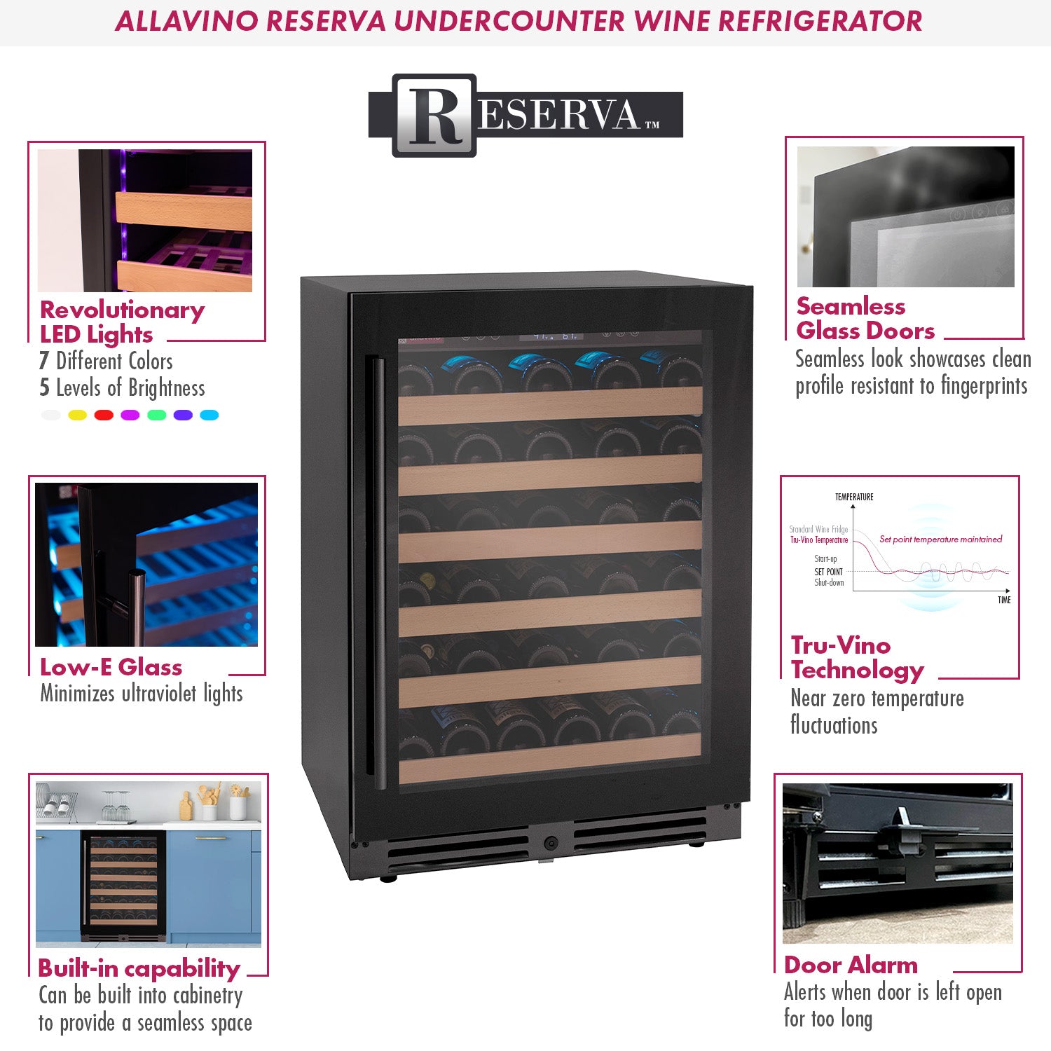The Allavino Reserva BDW5034S-1BGR Single Zone Right Hinge Wine Refrigerator Cooler with Tru-Vino® temperature control technology makes it easy to store up to 50 wine bottles of various sizes, and can be built into your cabinetry for seamless wine storage.