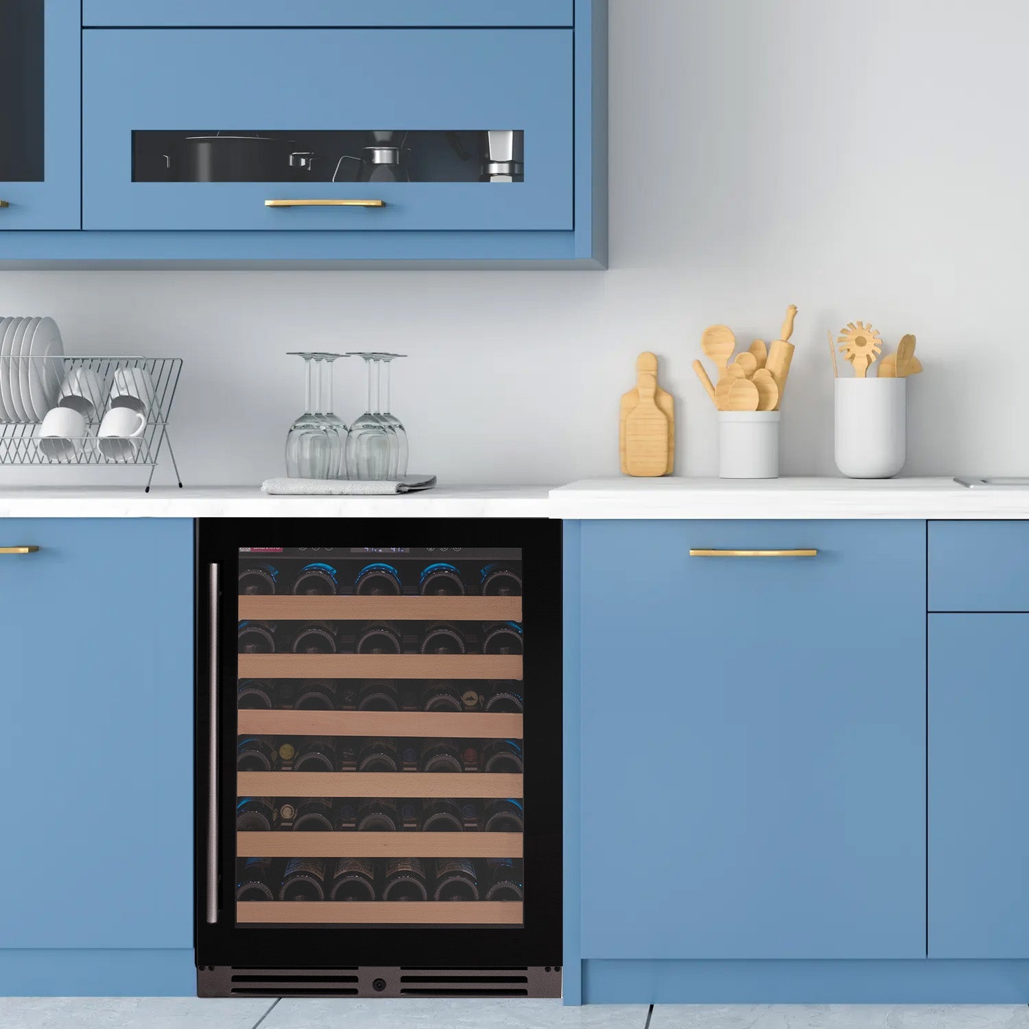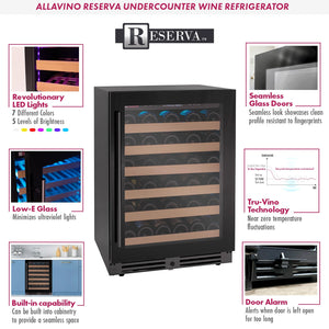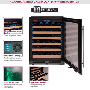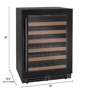 Reserva Series 50 Bottle Single Zone Built-in Luxury Wine Refrigerator with Black Glass Door - Right Hinge