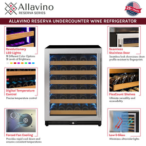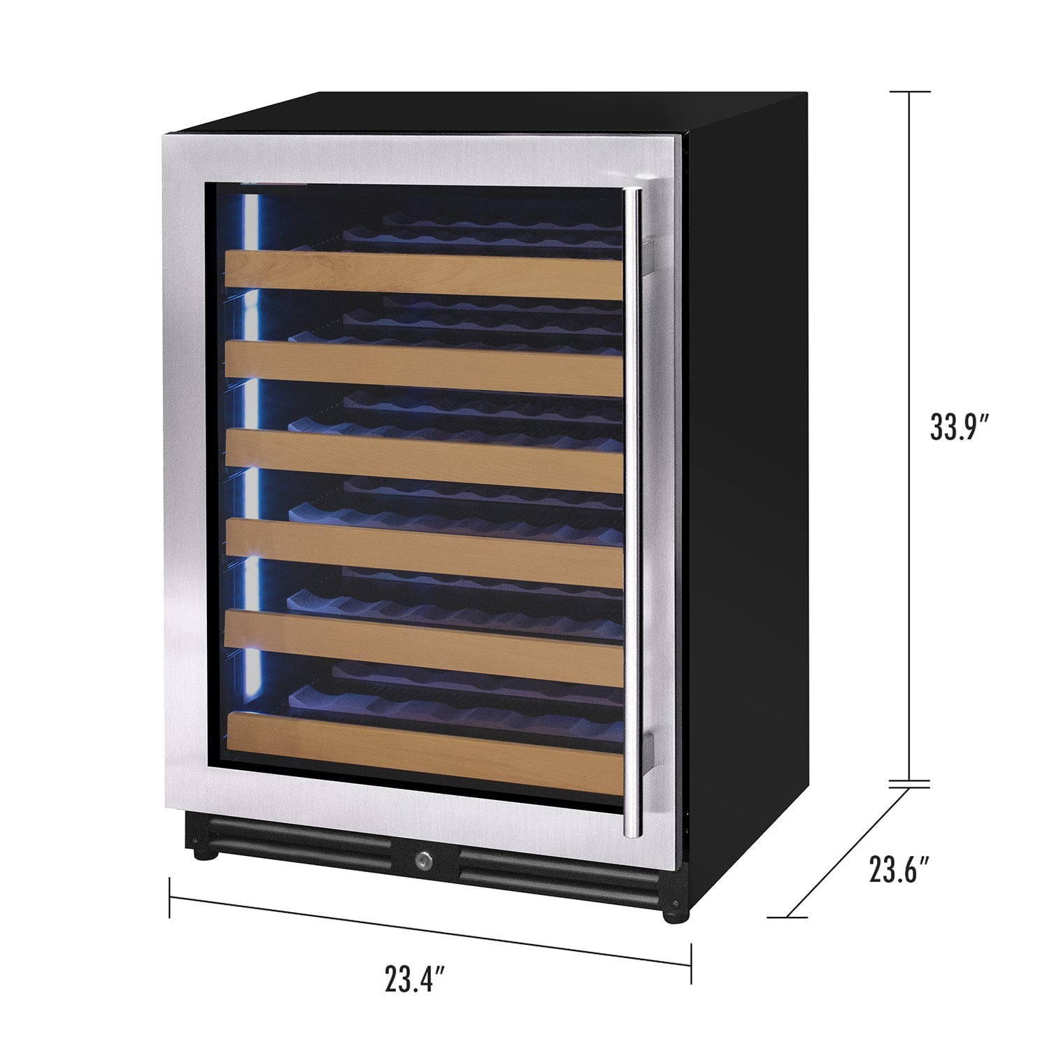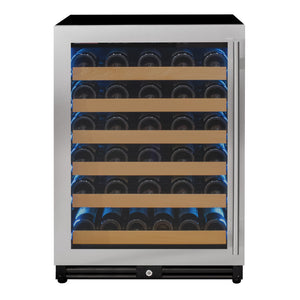 Reserva Series - 56 Bottle Single Zone Built-in Luxury Wine Refrigerator with Stainless Steel Door - Left Hinge