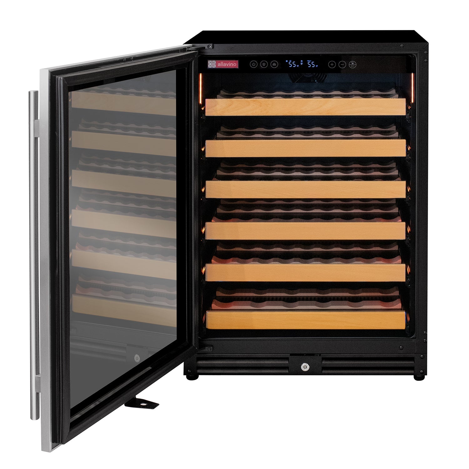 Allavino's exclusive FlexCount shelves give you ultimate flexibility and accessibility, regardless of bottle size. Spacing between each shelf gives you enough clearance to not worry about racks scraping your bottle labels. Wood slats refine each shelf to cradle your wine bottles and are designed with vibration-reduction technology to prevent harmful vibrations from excessive movement and damage.