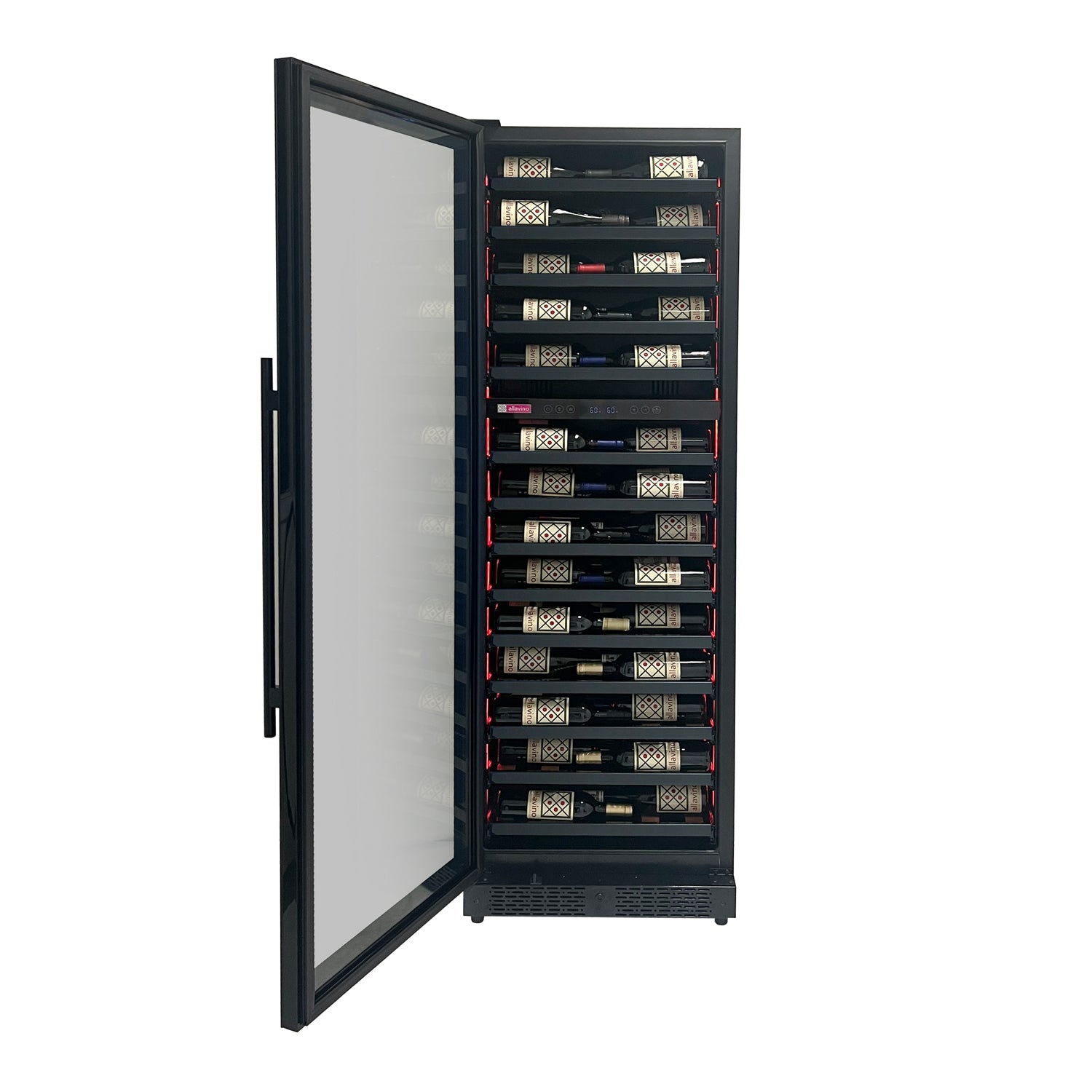 Reserva Series 67 Bottle 71" Tall Dual Zone Left Hinge Black Shallow Wine Refrigerator Console