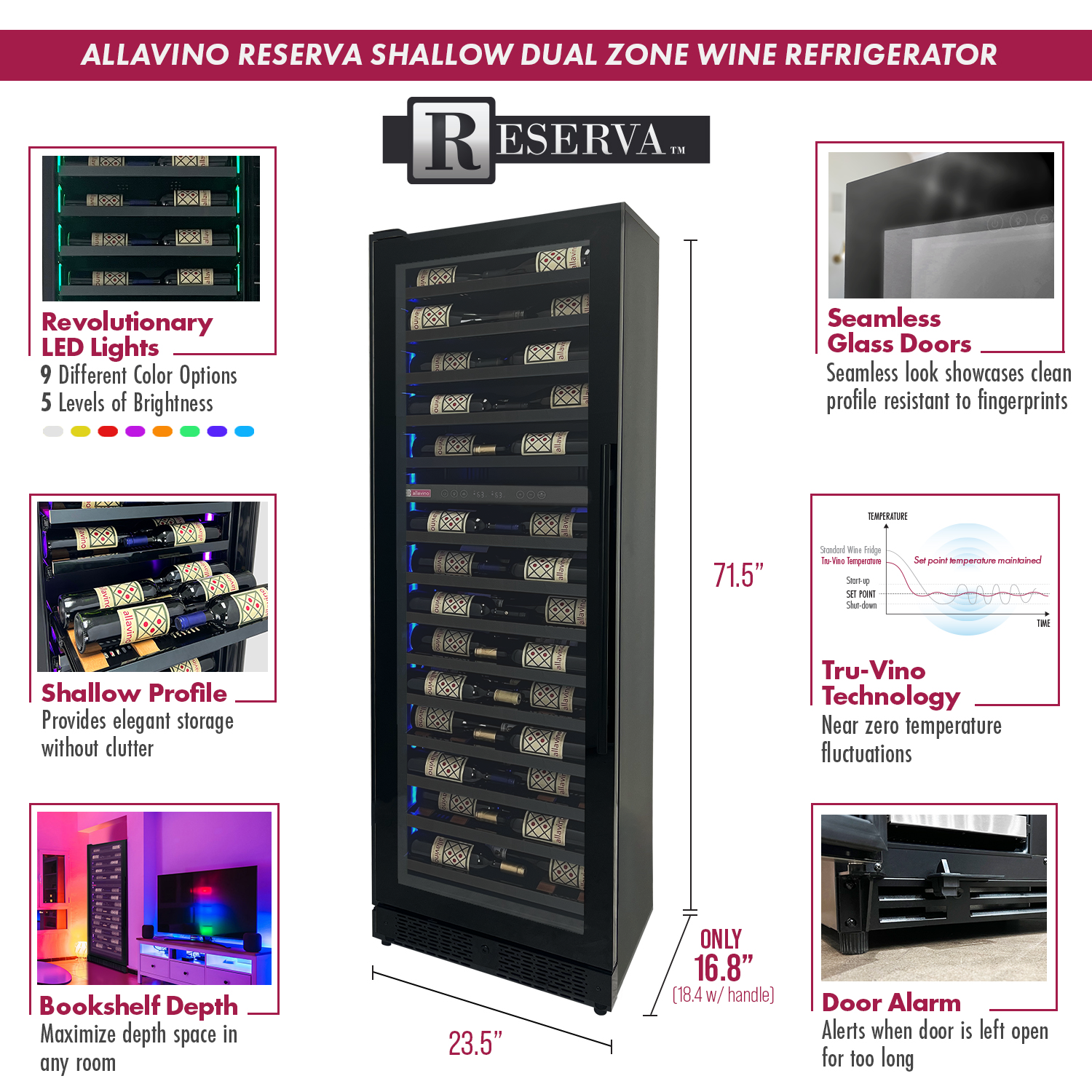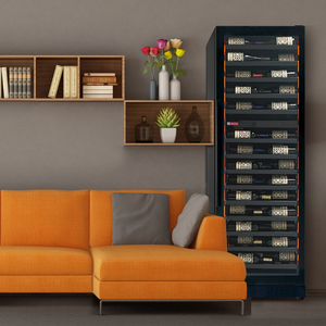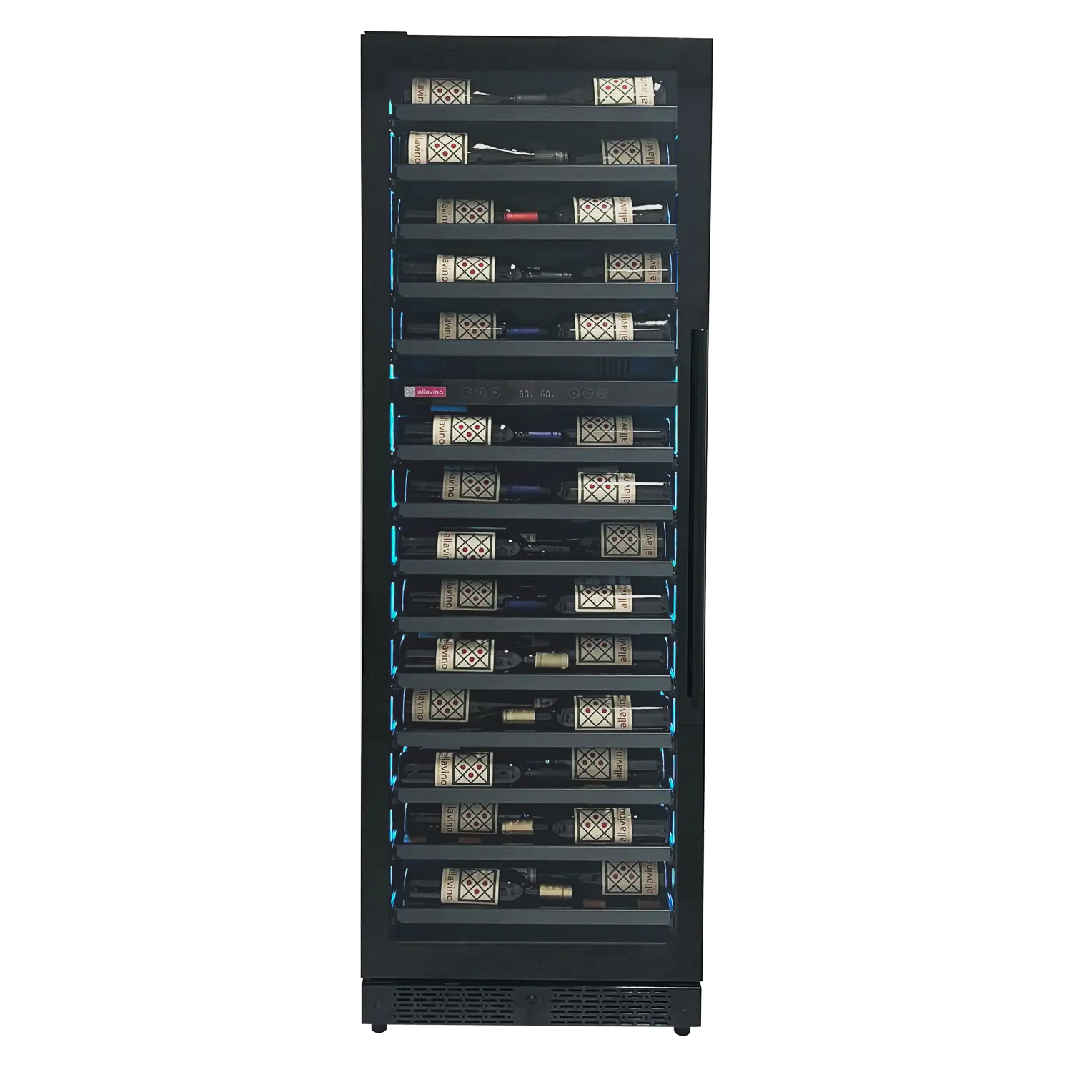 The spacious VSW6771D-2BL can store an assortment of wine, up to 67 standard bottles. Two independently controlled temperature zones inside allow you to store both red and white wines at different temperatures. Tru-Vino technology inside keeps wine steady at your chosen thermostat temperature with few fluctuations. Customizable lighting allows you to change the color of the lighing inside to whichever hue you prefer.