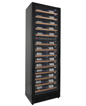 Reserva Series 67 Bottle 71" Tall Dual Zone Right Hinge Black Shallow Wine Refrigerator with Wood Shelf Fronts