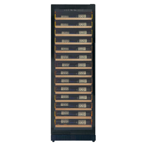 The VSW6771S-1BL-WD can store up to 67 standard bottles in a shallow, compact form factor. An attractive black door frame with specially-coated glass blocks damaging UV rays from affecting your wine. Wood fronts gives an attractive appearance to the shelving inside. Lighting controls allow you to change the color of the lighting inside to one of 7 colors, or set it to cycle through all if you want. Store any type of wine at their preferred temperatures with the pair of separate temperature zones inside, and the Tru-Vino technology inside will hold the temperature steady at your chosen thermostat setting.