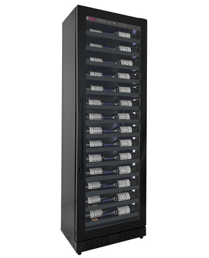 The VSW6771S-1BR stores up to 67 standard bottles behind an attractive black metal door. The specially-coated glass blocks damaging UV rays from affecting your wine. While allowing the bottles inside to be clearly seen. The lighting inside is customizable, able to be switched to one of 7 colors or set to cycle through all. Store any type of wine at their preferred temperature, and the Tru-Vino technology inside will hold the temperature steady at your chosen thermostat setting.